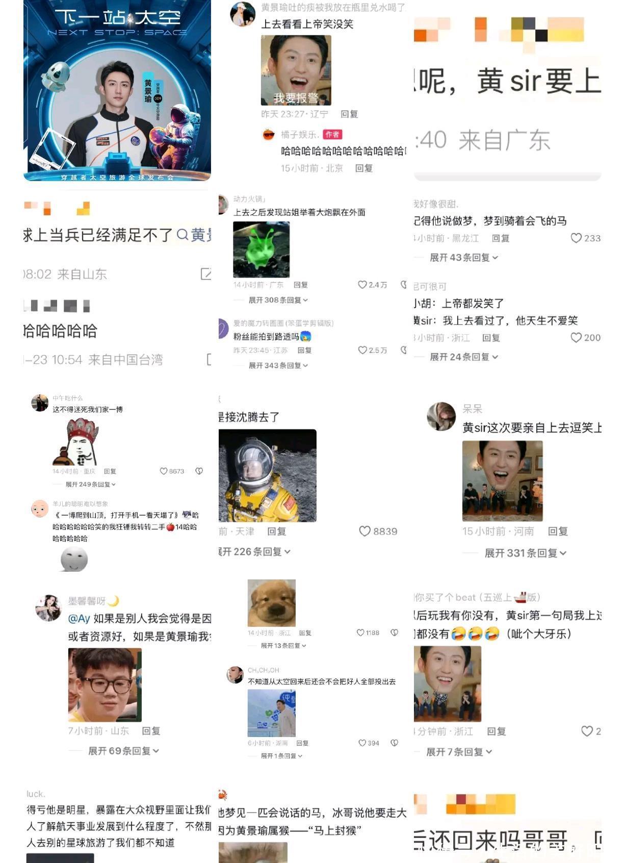 讲真,这波操作真的承包了我一整年的笑点!黄景瑜官宣上太空本身就够震撼了——要知道他有耳石症还恐高,却敢挑战太空旅行,300万船票+专业训练的硬核配置,妥妥的现实版“硬汉追梦”。可没想到网友的脑洞比事件本身更绝,每一条评论都精准踩在笑点上。